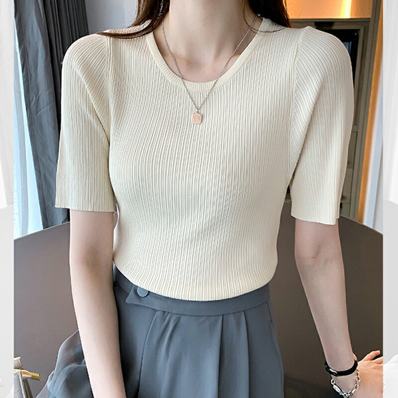 春の最新作 サマーニット Uネック リブ ニット トップス レディース 半袖 春 夏 ワンマイルウェア ルームウェア 母の日ギフト韓国 韓国ファッション 中国ファッション 代 30代 40代 50代 Cocomomo Select